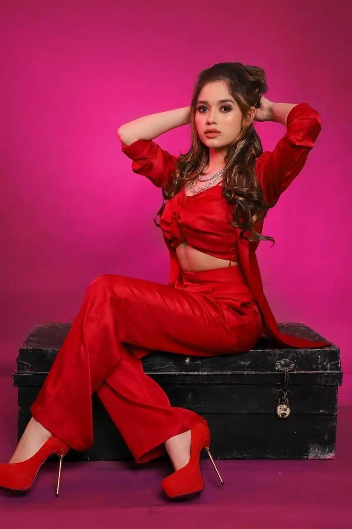 Crimson Red Shrug & Pants with Bustier