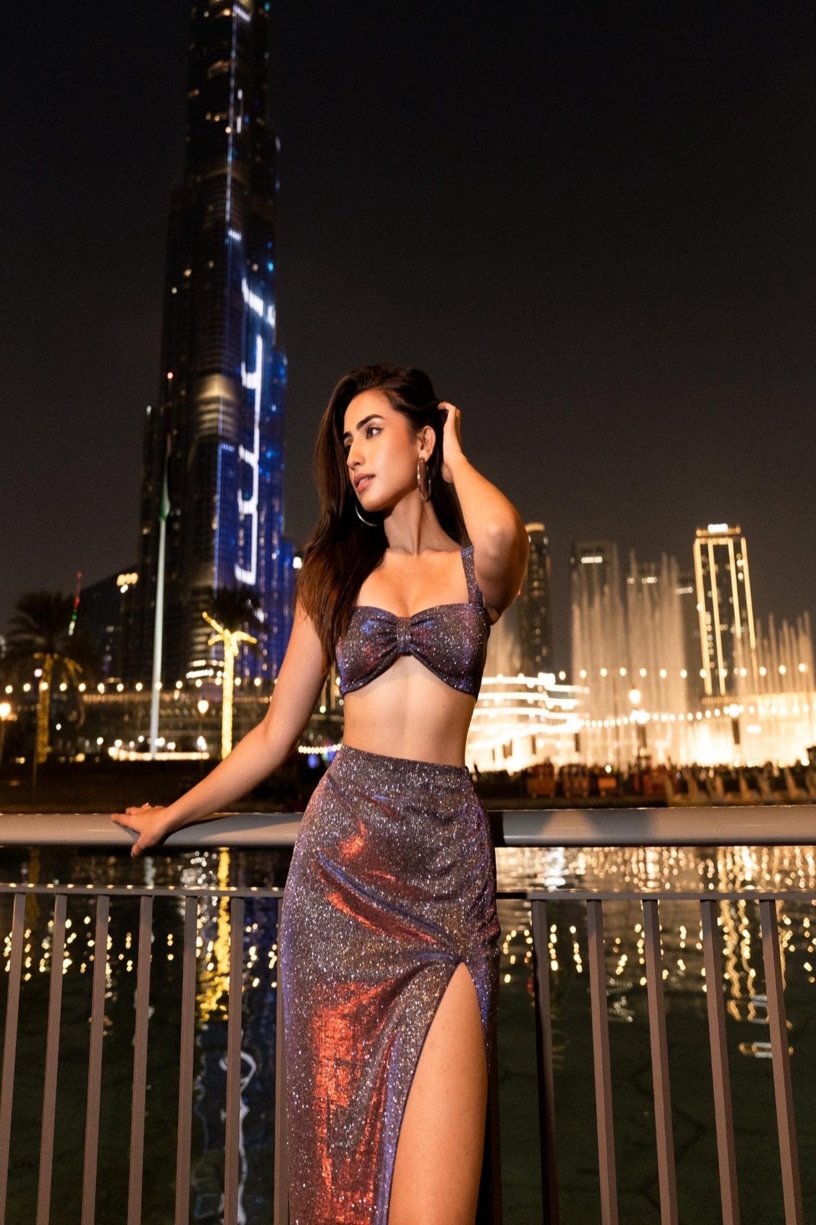 Bluish Grey Glitter crop top and skirt