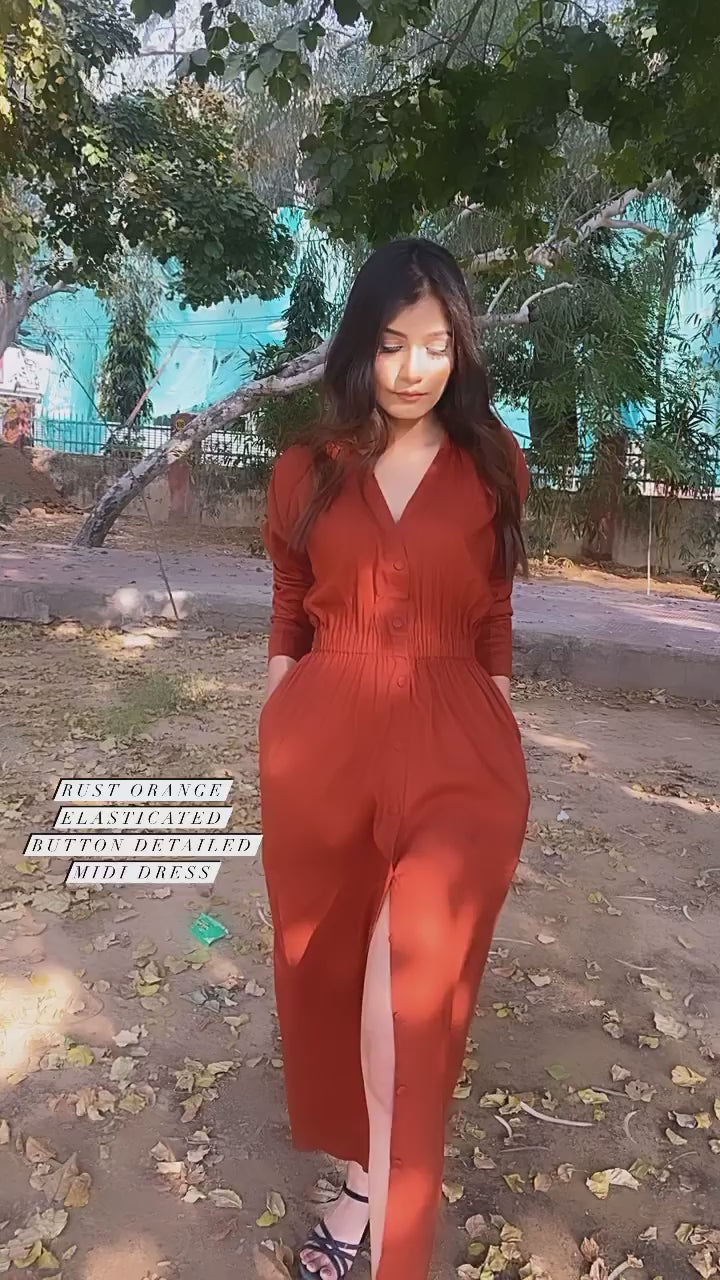 Brick Orange Elasticated Midi Dress