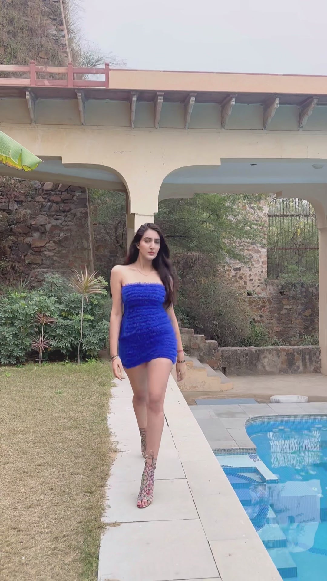 LAPIS BLUE TUBE FRILL LAYERED MINI DRESS