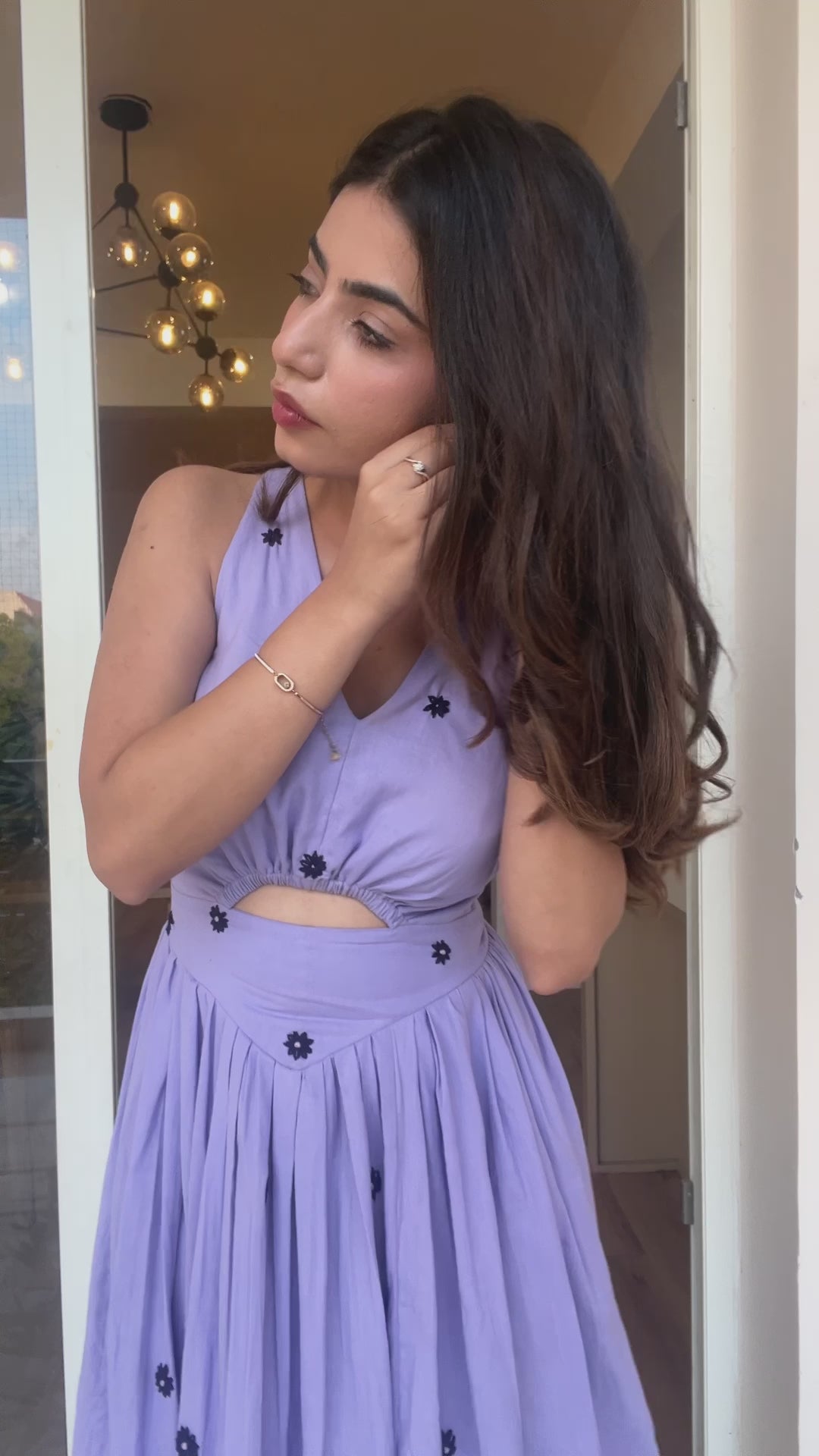 LAVENDER GATHERED HAND EMBROIDERED MAXI